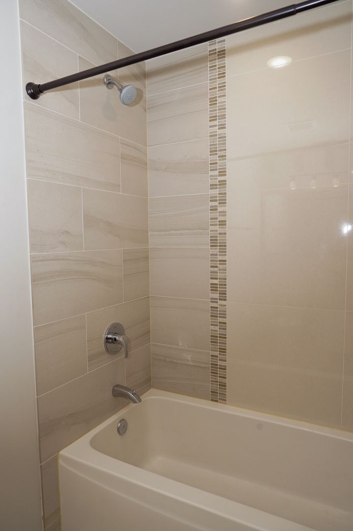 Master bath features porcelain and ceramic tile surround with mosaic tile insert