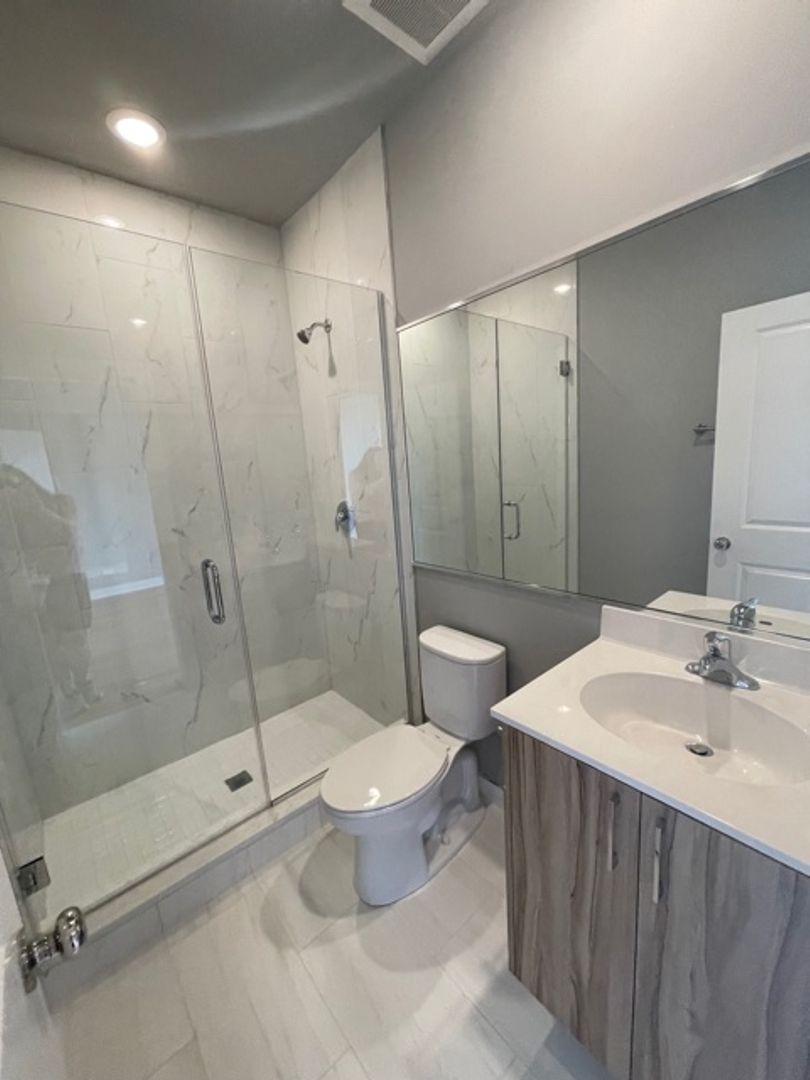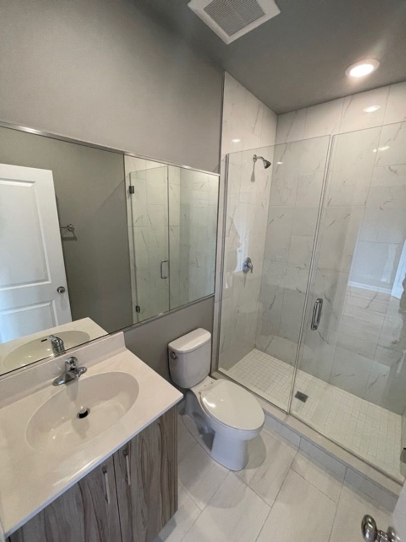 Gorgeous baths with porcelain floors